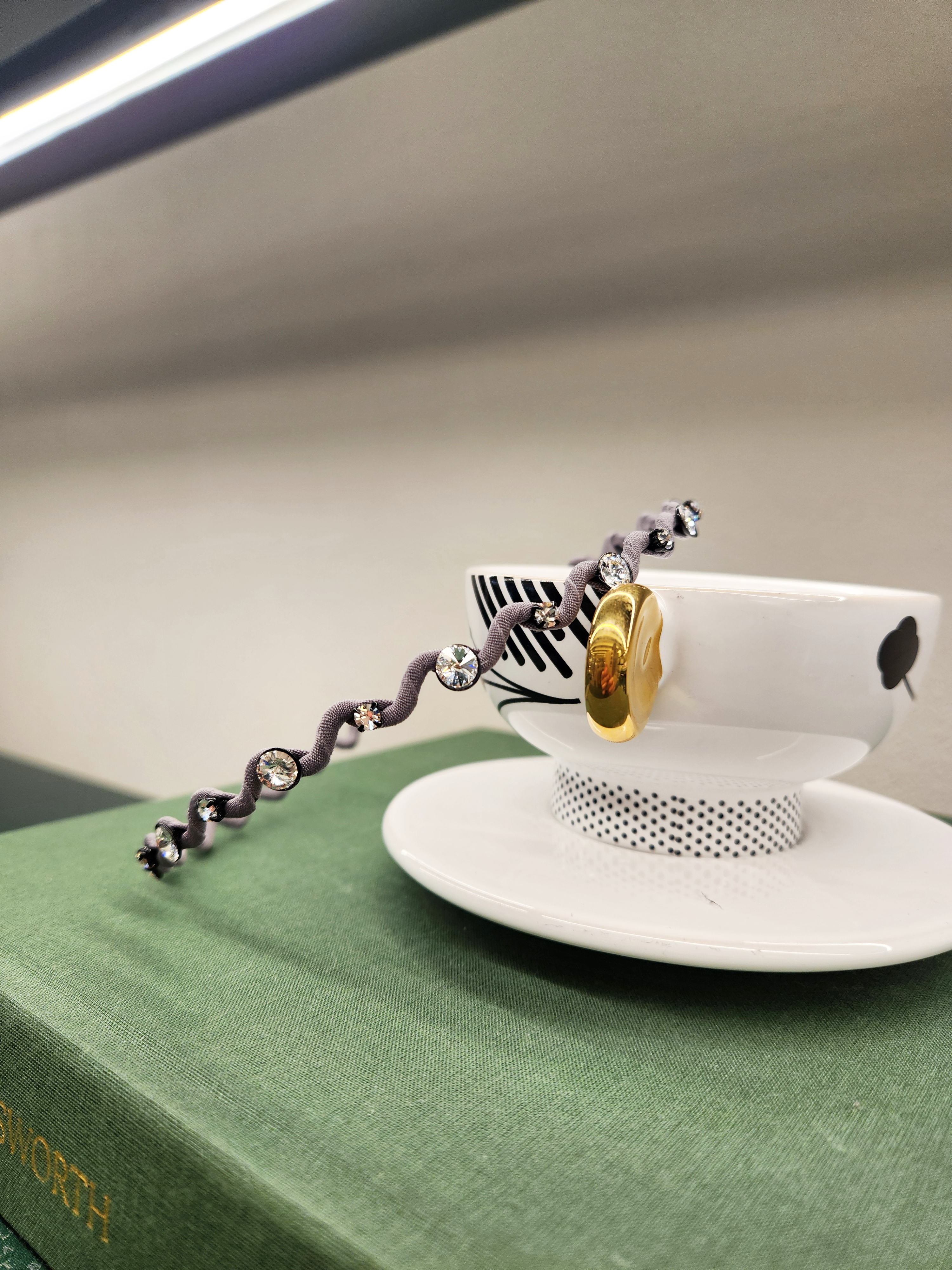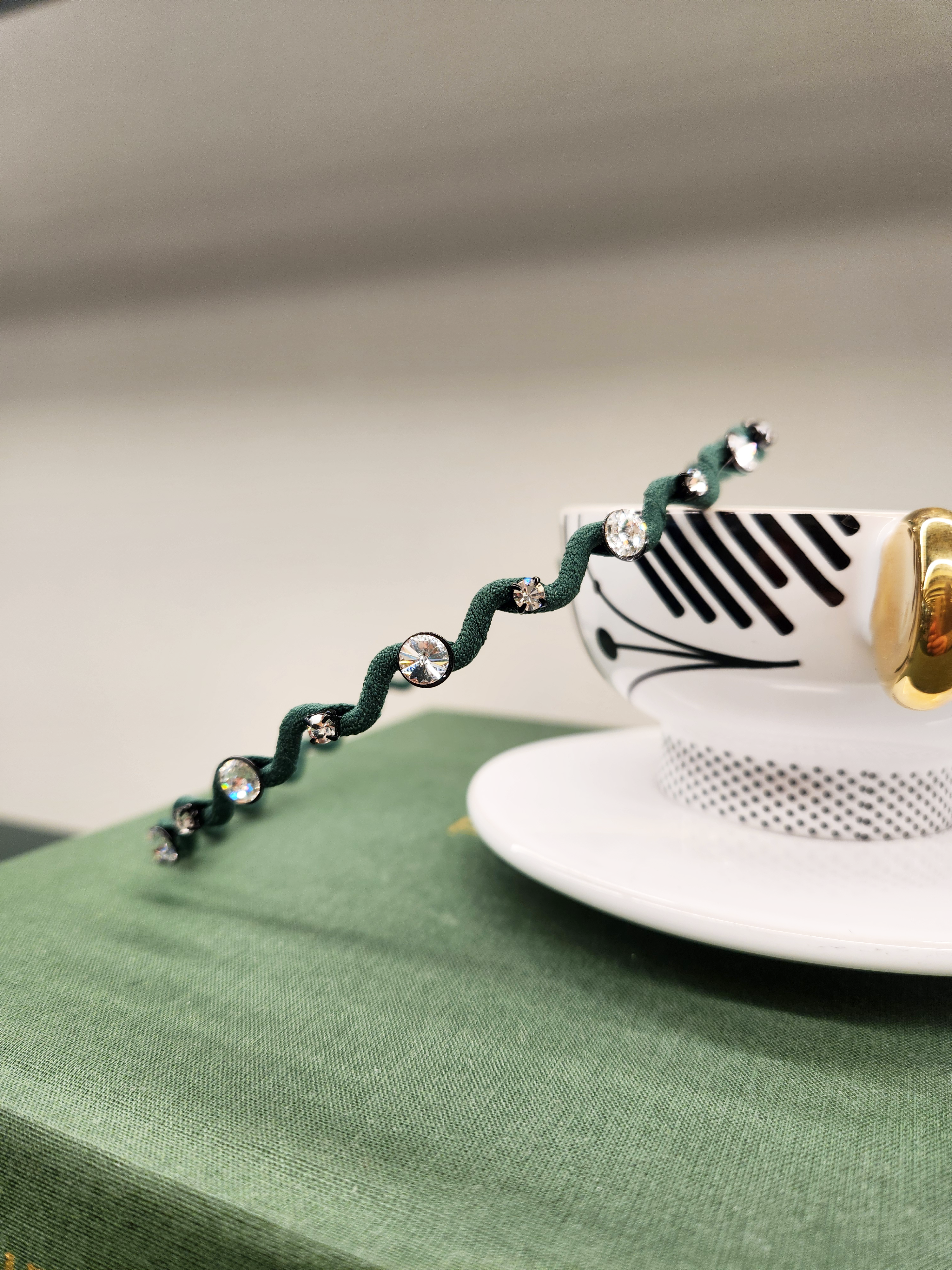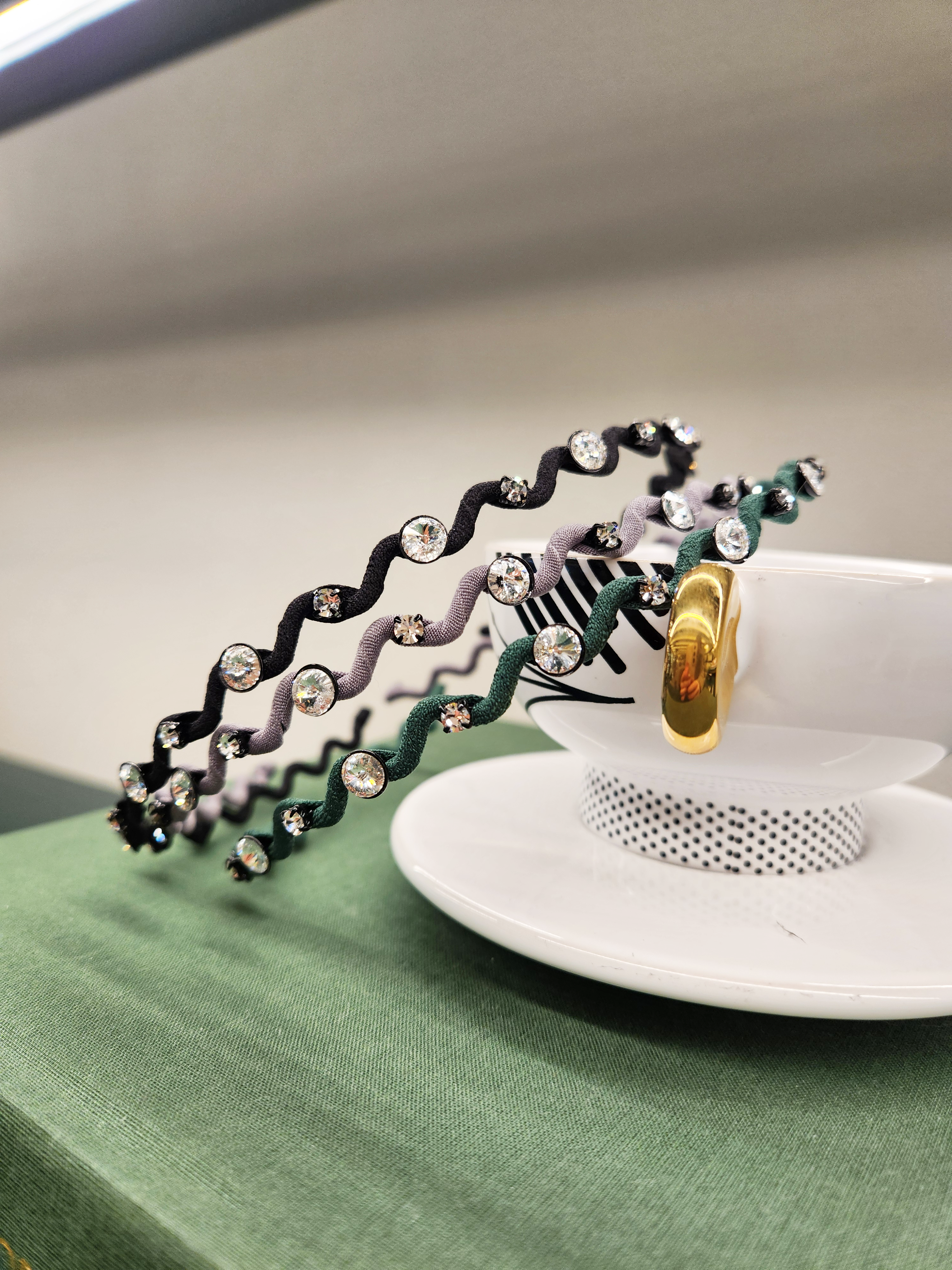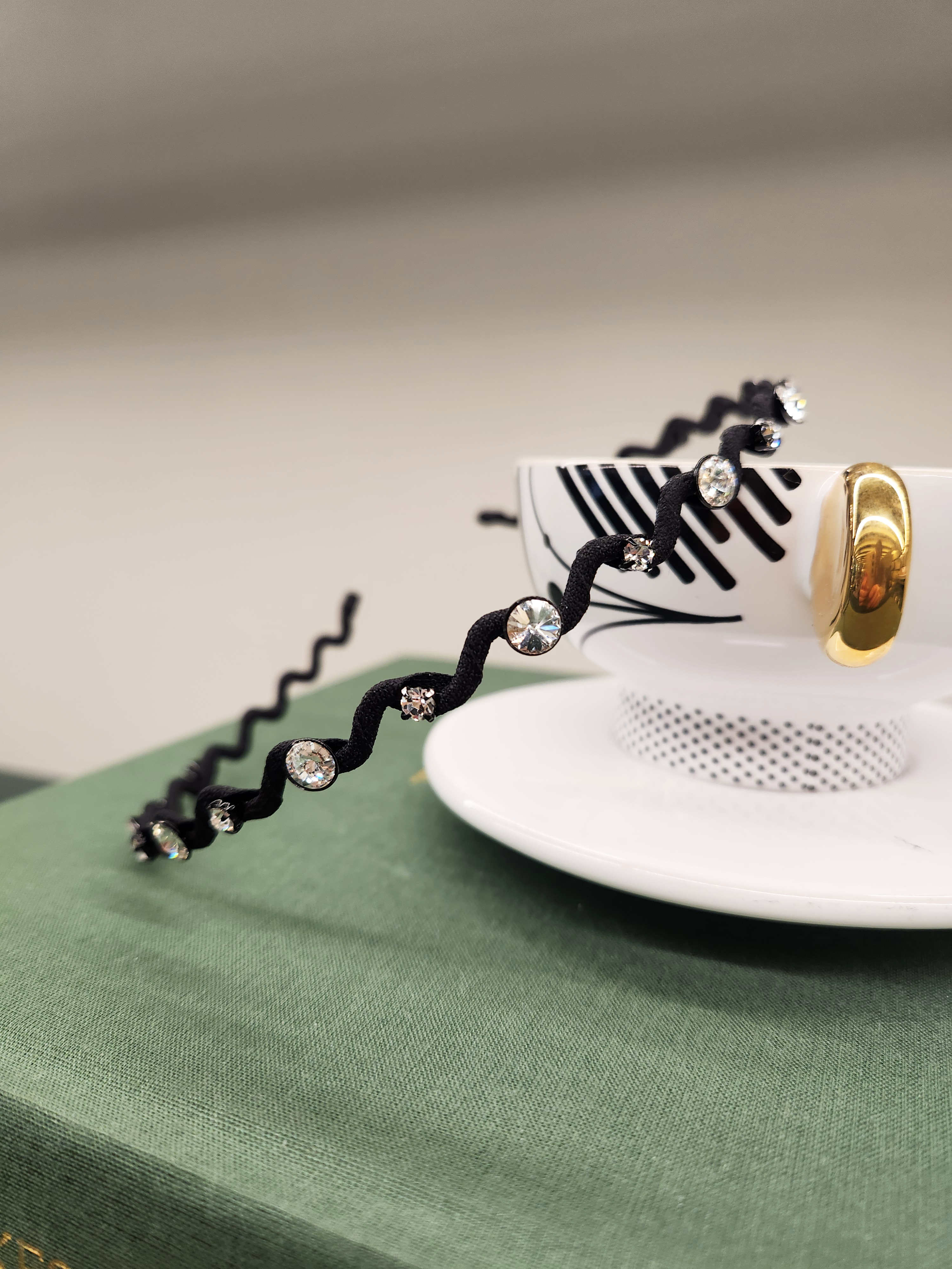 This elegant headband with crystal details adds a modern and stylish touch to any hairstyle. The unique, wavy designs give a playful and lively feel, perfect for both everyday wear and special occasions.