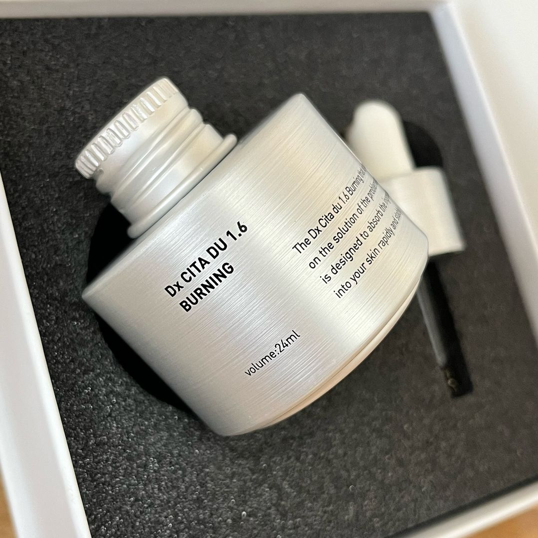 Trinn 2: Når Trinn 1 er absorbert, påfør DX Cita Dew 1.6 Burning Ampoule (Trinn 2) over hele ansiktet for å tilføre fuktighet og balansere huden.