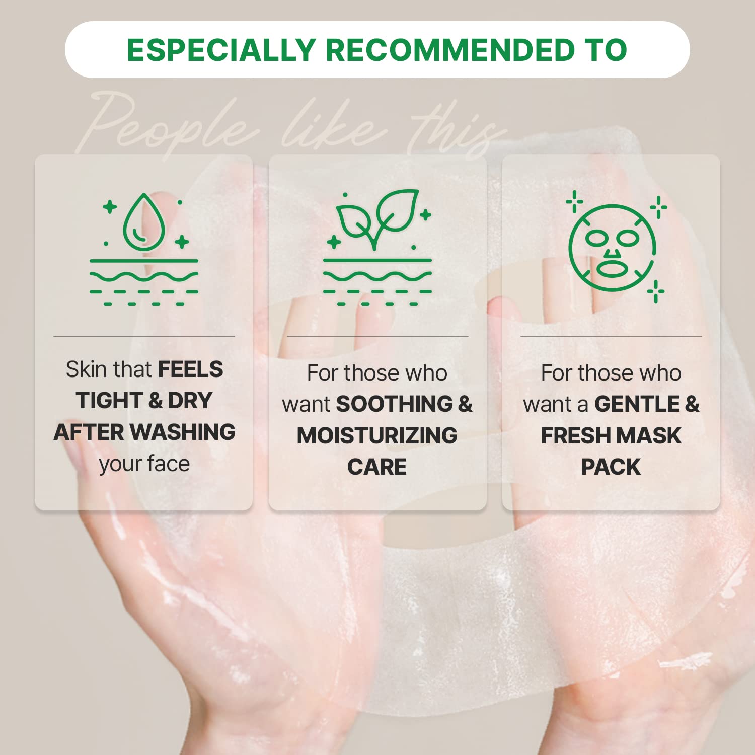 CICAPLUS ansiktsmaske inneholder panthenol og aloe vera for å fukte huden din dypt.